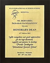 Leta 2016 sem postala Ambasador znanj in organizirala prvi mednarodni kongres detektivov v Sloveniji. V Sloveniji sem leta 2017 prvič v zgodovini detektivske dejavnosti organizirala mednarodni kongres in nato še leta 2023. Redno predavam na mednarodnih konferencah in sodelujem pri raziskavah ter razvoju detektivske dejavnosti. Sem tudi izvoljena delegatka Council of International Investigators v zvezi IKD, kjer sicer delujem že od leta 2007. Sem častna dekanja detektivske šole v Bukarešti.